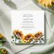 Celebre seu dia especial com esses convites de chá de panela quadrados maravilhosos apresentando uma bela borda inferior de girassóis de cor d'água em tons de ouro amarelo e verde. O design permite adicionar facilmente seu texto personalizado usando os campos modelo. O verso da carta continua o tema com girassóis adicionais, criando um olhar coeso e elegante. Perfeito para chás de panela de verão e outono, esses convites combinam encanto rústico com elegância botânica. Projetado por Victoria of VG Invites, conhecido por oferecer alguns dos mais belos convites para o casamento no sul da Flórida. Explore convites de chá de panela florais e silvestres mais elegantes na VG Invites no Zazzle.