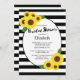 Convites de chá de panela de girassol de outono moderno, com lindos girassóis de outono, colocados sobre um fundo preto e branco contemporâneo.