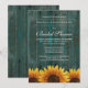 Country Rustic Sunflower Convites de chá de panela - apresenta um fundo de madeira rústica de tartaruga angustiada com girassóis rústicos no fundo.
