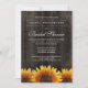 Convites de chá de panela de girassol russo do campo - apresenta um fundo de madeira de celeiro com girassóis rústicos no fundo.