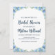 Celebre o seu chá de panela futuro com estes convites elegantes e românticos. Apresentando uma bela pintura aquosa de hidrangeas azuis empoeiradas, acentuadas com delicada paisagem verde e caligrafia elegante, esses convites são perfeitos para uma celebração de primavera ou verão. A paleta de cores azul e branca cria um eterno e um aspecto sofisticado.