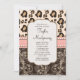 Esses convites de chá de panela de impressão florais e leopardo cor-de-rosa, castanho-escuro e ouro são formais, doces, elegantes, sofisticados e na moda com duas fitas impressas de miçangas de pérolas e uma design de faixa cor-de-rosa e uma faixa sutil e fundo úmido. Esses convites para chás de panela de impressão em animais também podem ser personalizados para uma festa de solteira. Observe que não há nenhum embelezamento tridimensional adicionado a este cartão. Este convite está impresso em formato plano. Projetado por Chrissy H. Estúdios, LLC. Todos os direitos reservados.