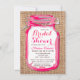convites de chá de panela rústicos, convites de chá de panela de campo, jarro de mason, jarra de latas, convites de chá de panela de jarro de mason, convites de chá de panela, chá de panela para oeste, chá de panela ocidental, ideias de chá de panela rural, vintage, rosa-quente, rosa, fúcsia, convites de chá de panela de jarro de mason de burlap