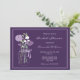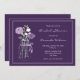 convites de chá de panela russos com um jarro de mason cheio de flores roxas e lilás sobre fundo roxo.