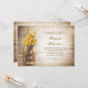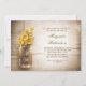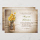Fundo romântico de madeiras rústicas e jarro de mason com convites de chá de panela de flores amarelas. Eu sugiro uma linhagem bonita ou papel de textura felada para este design.