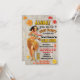 Convites de chá de panela de Luau Havaiano super legal e retrógrados com uma ilustração vintage de uma linda garota hula que o acolheu a um chá de panela. Típica divertida, flores em um fundo de madeira curtida.