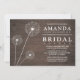 Convites de chá de panela de madeira de Dandelion Barn - mostra dentes de leão sobre um fundo de madeira de celeiro. Consulte os produtos correspondentes neste design através da coleção encontrada nesta página.