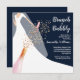 Brunch e chá de panela borbulhante apresentam noiva no seu vestido e véu sobre um fundo azul marinho com uma garrafa cor-de-champanhe, sequências falsas e vidro cor-de-rosa com seus detalhes em letras brancas quentes. **DICA: O tamanho quadrado REQUER POSTAGEM EXTRA. Você pode MUDAR A COR DE FUNDO para qualquer coisa com nossas ferramentas de design, basta clicar no botão Editar.