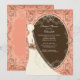 Comece a chá de panela com nosso chá de panela gracioso e elegante. Design apresenta uma noiva chic sobre um fundo de pêssego de coral com uma estrutura marrom cercada de rico e lindas flores. Visite-nos em www.celebrateitinvites.com para ver este design em uma grande variedade de esquemas de cores.
