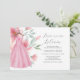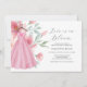 Celebre a noiva com esses convites de chá de panela cor-de-rosa elegantes online, apresentando um encantador vestido de aquarela cercado por flores delicadas em tons suaves de rosa e azul sage. A frase "O amor está florescendo" é estilizada em tipografia de roteiro moderno, adicionando um toque romântico perfeito para festas de primavera ou no jardim.