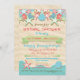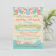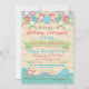 Convites de chá de panela tropicais de Seashell com uma variedade em conchas com lindas cores em um fundo de Sandy Beach e Ocean. Ilustração desenhada à mão pelo McBooboo. Excelente para qualquer casamento tropical, ilha ou praia temático.