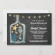 Convites de chá de panela de quadro náutico - apresentam um fundo de quadro impresso com uma garrafa náutica cheia, cavalos-marinhos, estrelas, conchas e corais. O design também apresenta as luzes de string no topo.