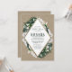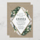 Calla Lily Burlap Lace Convites de chá de panela - apresenta um fundo de burlap com rendas e elementos florais de flores de samambaia, lírio solteiro, hálito de bebê, folhas e muito mais. A caixa de texto é um triângulo elegante com uma imagem falsa de ouro impresso em folha. Esta coleção apresenta artigos de papelaria elegantes para florestas, boêmias (boho), países, rústicos e outros temas semelhantes de casamento.