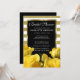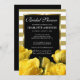Lindas rosas amarelas e chá de panela de listras de ouro. Uma maneira elegante de convidar seus convidados para um primavera ou chá de panela de verão. Um retângulo preto contém as informações do chá de panela, que é cercado por uma elegante estrutura dourada. Todo texto pode ser editado. Você também pode alterar a fonte, o tamanho e a cor do texto.