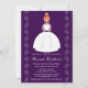 Personalize e personalize este chá de panela bonito com um fundo de ameixa ligeiramente texturizado e uma bonito noiva avermelhada num vestido de noiva sem traço com uma barra de ameixa e um padrão de flores bonito na saia. Ela veste uma flor em seu cabelo e os acessórios com um adorável par de brincos perigosos em forma de gota de lágrima. Ilustração e trabalho de arte © Chrissy H. Estúdios, LLC. Todos os direitos reservados.