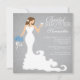 O convite para chá de casamento de noiva Na moda moderna apresenta uma noiva moderna chic brindando com um copo de vinho enquanto segura um belo buquê de flores para casamentos azuis escuras em um papel impresso em fundo de cinza com texto branco destacado. Nosso chá de panela moderno de noiva é perfeito para uma celebração popular de chás de panela de vinho. Visite nosso compro para ver este belo chá de panela em uma grande seleção de cores de buquê floral e diferentes variações de noiva.