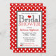 Convites de chá de panela bonitos e na moda com bolinhas brancas em vermelho. Personalize com os detalhes do chá do futuro noivo e escolha seu tipo de papel também!
