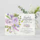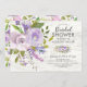 chá de panela floral com flores lavandas roxas de cor aquosa, lindíssimas, pintadas manualmente. Sacudir nosso convite para ver uma coordenação de volta para um toque especial extra.