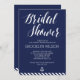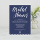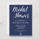 Convites de chá de panela náuticos com faixas azuis marinhos, âncora branca e texto branco personalizado impresso em fundo azul marinho