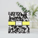 Monograma de Damasco Amarelo e Preto Salve a data cartões postais de casamento