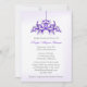 Convites de chá de panela personalizados de candelabro roxo personalizados com um candelabro roxo em um fundo roxo e branco. Personalize completamente este chá de panela clicando em "personalizá-lo" para obter mais opções de fonte e cores de fonte que podem ser localizadas na lista suspensa "editar" para seleção de cor de fonte.