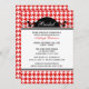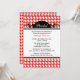 Convites de chá de panela de na moda e classe projetados em um padrão de som vermelho e branco, e impressos com detalhes de celebração.