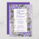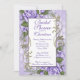 chá de panela rosa roxo elegante com rosas de lavanda roxas lindas, colocadas sobre um fundo úmido lilac com uma estrutura de espiral dourada. Nosso chá de panela de rosas roxos vintage é a primeira impressão perfeita para a celebração do seu chá de casamento.
