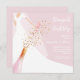 Brunch e chá de panela borbulhante apresentam noiva no seu vestido e véu em um fundo cor-de-rosa pastel com uma garrafa de champanhe cor-de-rosa, sequências falsas e vidro cor-de-rosa com seus detalhes em caracteres brancos. **DICA: O tamanho quadrado REQUER POSTAGEM EXTRA. Você pode MUDAR A COR DE FUNDO para qualquer coisa com nossas ferramentas de design, basta clicar no link Personalizar mais.