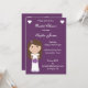 Convites de chá de panela roxos bonitos e impressionantes com uma ilustração de noiva de personagem de desenho animado sorridente. O texto é totalmente personalizável para atender às suas necessidades - basta clicar no botão "Personalizar". Carregamentos de fontes e cores a escolher - clique em "F" para alterar o estilo da fonte. A cor de fundo também é personalizável clicando em " Personalizar" e em "Editar" e em "Plano de fundo".