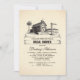 Chá de panela de galeria com casas de celeiro - fazenda e paisagem rural rústica com árvores, barril, madeiras e cartazes de madeira com as iniciais de noiva e noiva escritas juntamente com a data do casamento. Convidado perfeito para chá de panela rústico no celeiro.