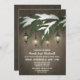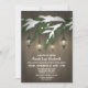 Convites de chá de panela Rústico Evergreen Lanterna - design apresenta um fundo de madeira rústico com lanternas balançando de uma neve coberta por cada galho verde de árvore. Consulte produtos correspondentes neste design encontrado na coleção nesta página.