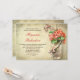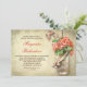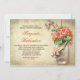 convites de chá de panela únicos de design. Coral cor flores silvestres Mason jar com fita elegante e borboletas e fundo velho de burlap . Eu sugiro o papel "Linen" ou "Felt" para esta design.