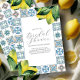 Traga o charme da Itália para a sua celebração com esses convites de chá de panela da Costa Amalfi, projetados para dar o tom para um evento na moda e ensolarado. Com limões elegantes e um padrão clássico de azulejo Amalfi azul, esses convites para chás de panela com tema limão são perfeitos para um encontro de verão com uma revigorante reviravolta de citros. Cada convite inclui uma caligrafia delicada, escrita à mão, que diz "Chá de panela", fazer que seja uma bela escolha para os seus convites para o almoço de chá de panela. Quer você esteja planejando um tema de chá de panela inspirado na costa italiana ou um pontapé inicial de destino, esses convites de chá de panela adicionam um sofisticado brilho de sol. Perfeito para um chá de panela de verão, estes convida a emparelhar sem esforço com pedaços de limão, cocktails spritz e todas as coisas italianas. ✨ Comprar o cheio de convites de chá de panela elegantes em www.zazzle.com/dotellabelle e comemorar com estilo o talento eterno mediterrânico.
