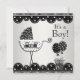 Adorável trem preto e branco e convite para o chá do bebê carruagem. Adicione os seus detalhes à frente e/ou atrás, simplesmente escolhendo o botão "Personalizar!" para começar a adicionar os detalhes do evento, estilo da fonte, tamanho e cor da fonte e texto. Observe que todos os designs de convite que você encontrará no Zazzle são gráficos impressos sem joias reais, arcos, levantados, gravados em relevo ou peças ou peças adicionadas.