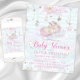 Convites de chabá de unicórnio com adorável unicórnio bebê dormindo em nuvens pastéis bonitas em um fundo pastel doce. Esses convites de chabá de unicórnio fofos são facilmente personalizados para o seu evento, basta adicionar seus detalhes.