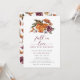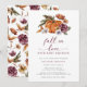 Convites de Chás de Bebê Abóbora. Celebre as festividades de outono com abóboras pintadas à mão em aquarela, flores de outono burgundy e terracota, botânicos de floresta verde e ferrugem, e caligrafia manuscrita burgundy. Deixe-nos ajudá-lo a tornar seu chá de bebê ainda mais especial com este convite lindo.