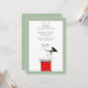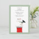 Convites criativos de chá de bebê para as festas de Natal, apresentando uma cegonha com chapéu de Papai Noel entregando um recém-nascido.