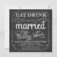 Convites de Chá de Cozinha para Casal em Quadro de Giz Rústico Elegante -- Comam, bebam e sejam Casados - Esboços sinuosos e elaborados e moldura rústica sofisticada em quadro de giz preto ardósia. Adicione o nome da noiva e as informações da festa neste modelo fácil de usar. Caligrafia a giz em estilo vintage e tipografia com letra cursiva elegante - mude os estilos de fonte para refletir o tema de casamento retrô formal ou semi-formal. O estilo de convite de quadro de giz quadrado é perfeito para casamentos modernos e sofisticados com um toque divertido de charme sofisticado para a noiva e o noivo tradicionais. NOTA: O design deste produto está configurado apenas para cartões quadrados, o que requer postagem extra.