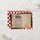 Ótimo convite para casais que estão tendo uma recepção de churrasco após o casamento. O convite tem um fundo xadrez vermelho e branco e um gráfico de um porco.