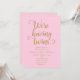 Convites de Chuvada de Bebê Gêmeos Rosa e Dourado. Personalize para qualquer evento.