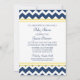 Convites personalizados para bebês em elegante e moderno azul marinho escuro, padrão brilhante chevron amarelo-limão e branco zigzags. Personalizável com seu texto, entre em contato conosco para solicitar uma alteração de cor.