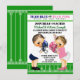 Convites de revelação de gênero de futebol com adorável bebê menino e bebê menina vestindo terninhos de futebol em um fundo de campo de futebol. Você pode personalizar facilmente este convite de revelação de gênero de futebol para o seu evento simplesmente adicionando seus detalhes.