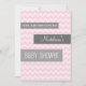Convites personalizados para bebês em elegante e moderno pastel claro, cor-de-rosa-bebê, cinza de carvão escuro e padrão de listras retrô chevron zigzags branco. Personalizável com seu texto, entre em contato conosco para solicitar uma alteração de cor.