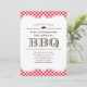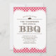 Convites de bolachas de CHURRASCO com um porco e um padrão de pano de mesa vermelho. Personalize o texto para ajustado das suas necessidades.