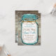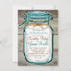 Convites de Despedida de Solteiro Rústicos Country com Jarro de Mason com acento em bola azul teal em um fundo de madeira de celeiro impresso. Adicione sua própria redação a este modelo personalizado.