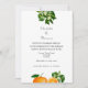 convite para casamento de na moda, ideal para casais que se casam na Flórida; apresenta laranjas e laranja florescentes com manchas de bolinhas no verso. Um design muito bonito, fácil de personalizar com seus detalhes de casamento.