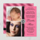 Foto dupla branca, preto, rosa e branca, Quinceanera convidado modelo. Este belo convite cor-de-rosa e preto da Quinceanera é facilmente personalizado para o seu evento, simplesmente escolhendo o botão "Personalizar!" para começar a adicionar as suas fotografias e detalhes do evento, estilo da fonte, tamanho da fonte e cor e texto. Observe que todos os adesivos, cartões e designs de convite que você encontrará no Zazzle são gráficos impressos sem joias reais, arcos, levantados, gravados ou acrescentados peças ou peças. com