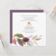 O convite para janto botânico de cor aquática elegante em formato quadrado único para o ensaio de cerimônia de casamento e para o janto de detalhes de celebração com uma borda de coloração aquosa em tons de folhas roxas, laranja queimada e verdes. Os detalhes de seu evento são definidos em um tipo elegante de sans serif e script tradicionais. A noite anterior à placa se inverte para uma cor sólida de ameixa. Perfeito para o janto de Ação de Graças, outono, casamentos temáticos rústicos ou jardins. Para ver mais designs como esta visite o VG Invites no Zazzle