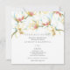Um convite para janto de ensaio botânico de cor aquática elegante em formato quadrado único para o seu ensaio de cerimônia de casamento e para jantar detalhes de celebração com uma borda de flores brancas de magnólia. Os detalhes de seu evento são definidos em um tipo elegante de sans serif e script tradicionais. Perfeito para primavera, verão, outono, inverno, casamentos temáticos rústicos ou jardins. Para mais designs de Victoria Grigaliunas, visite www.zazzle.com/dotellabelle