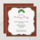 Convites de festas de férias com uma elegante borda vermelha e xadrez verde.